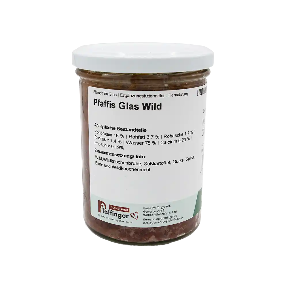 Pfaffis Glas ist hochwertiges Nassfutter im Glas – voll mit Energie, Geschmack und besten Zutaten.