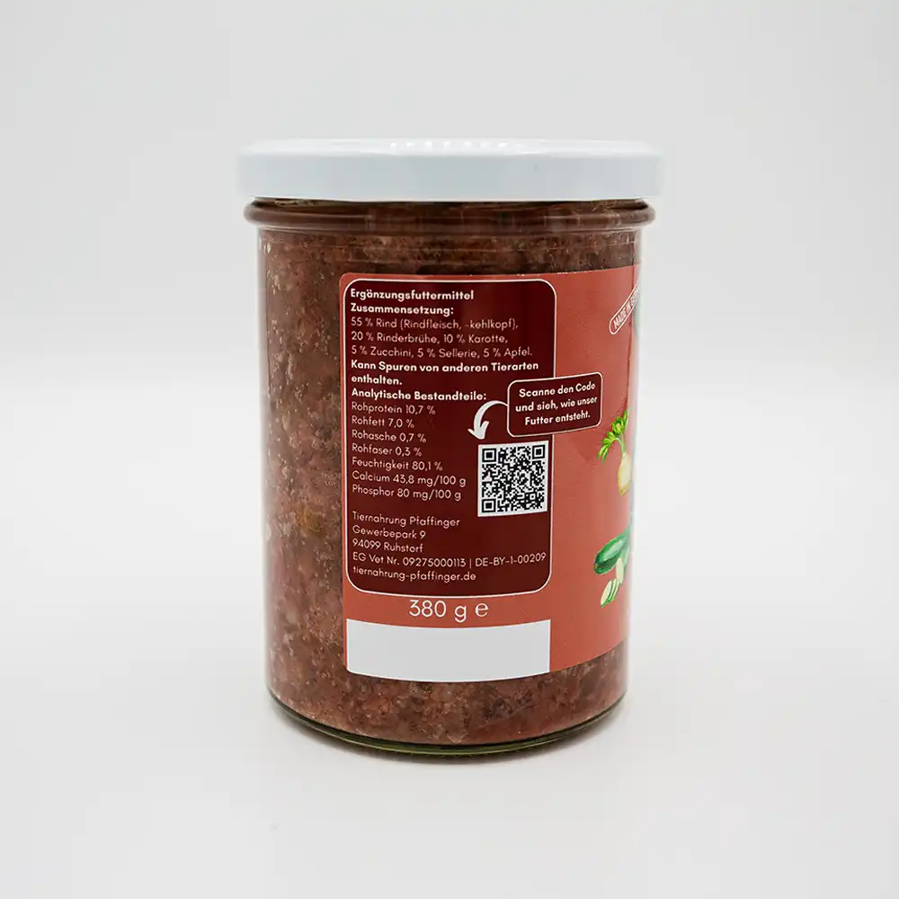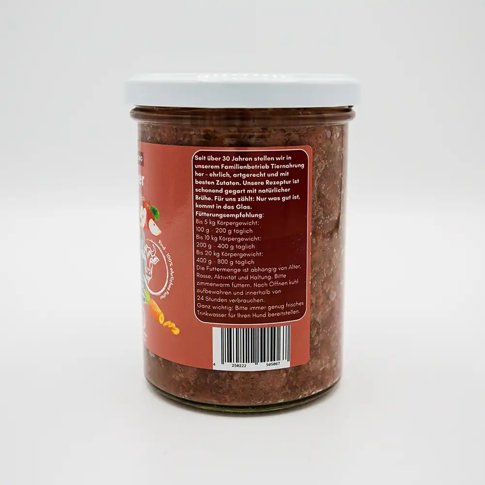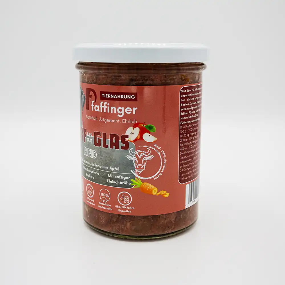 BARF aus dem Glas – Rind mit Karotte, Zucchini, Sellerie & Apfel