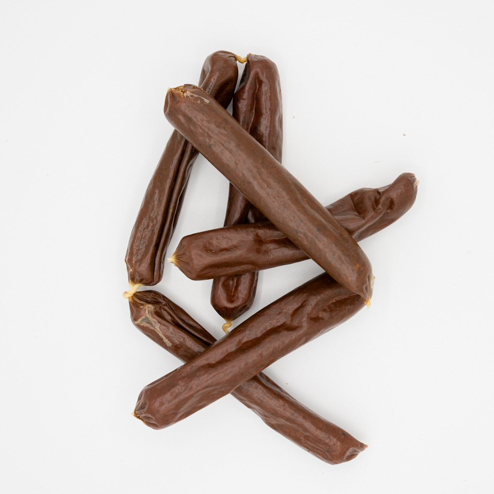 Pferdefleisch ist ein mageres und leicht verdauliches Protein. Die größeren Würstl können mit Kamille und Hagebutte zur Unterstützung des Immunsystems angereichert sein.